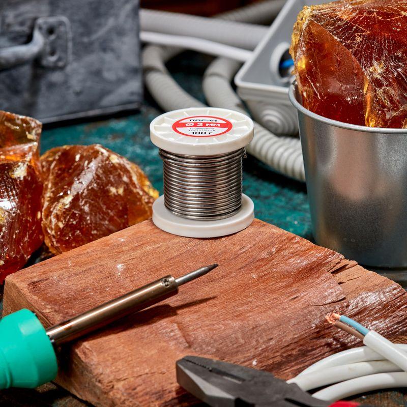 Фасовка – катушка с проволокой диаметром 2 мм. Температура плавления: солидус +183°C, ликвидус +190°C. Пайка металлов: сталь, латунь, бронза, медь, нержавейка.