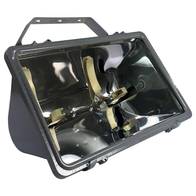 Отражатель из светоотражающего материала Alanod, параболический, с двумя плоскостями симметрии. Рассчитан для работы с кварцево-галогенными лампами КГ. Патрон R7s. Способ крепления, на поворотную скобу.