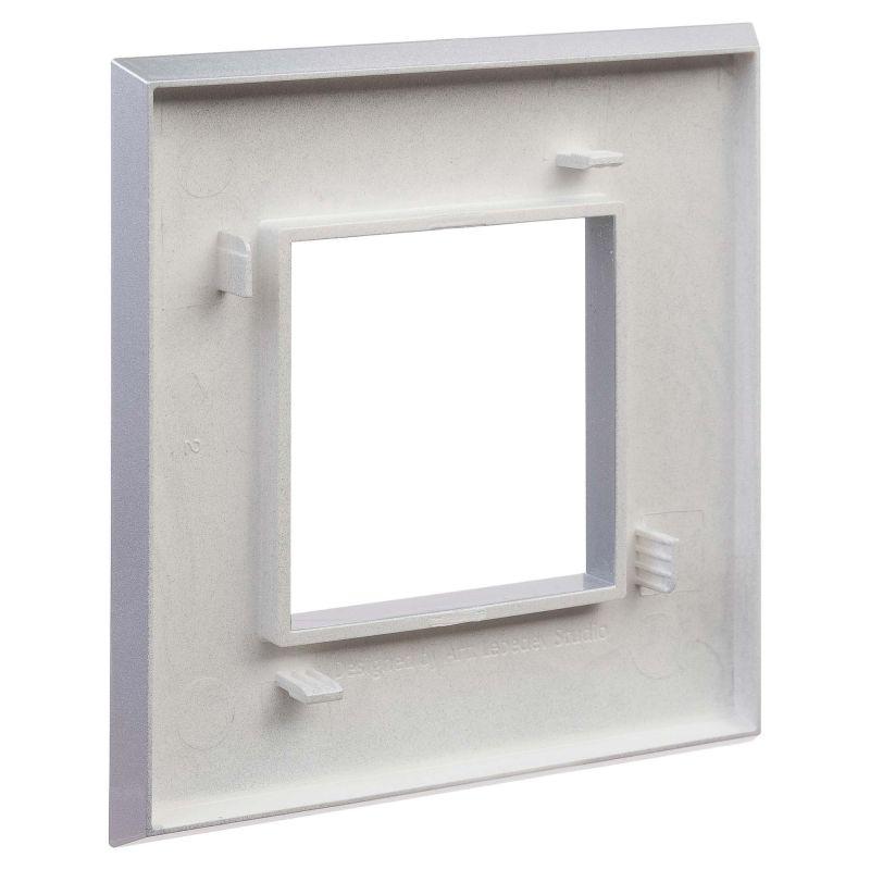 Рамка предназначена для размещение одного ЭУИ на 1-2 модуля. При этом рамка может быть размещена как горизонтально, так и вертикально. Габаритные размеры: 90х90 мм. Материал – термопласт.