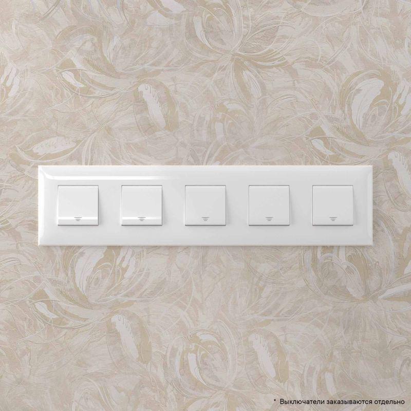 Рамка имеет 5 мест под электроустановочные изделия (максимальная вместимость – 10 модулей), может размещаться как горизонтально, так и вертикально. Габаритные размеры: 375х90 мм. Материал – термопласт.