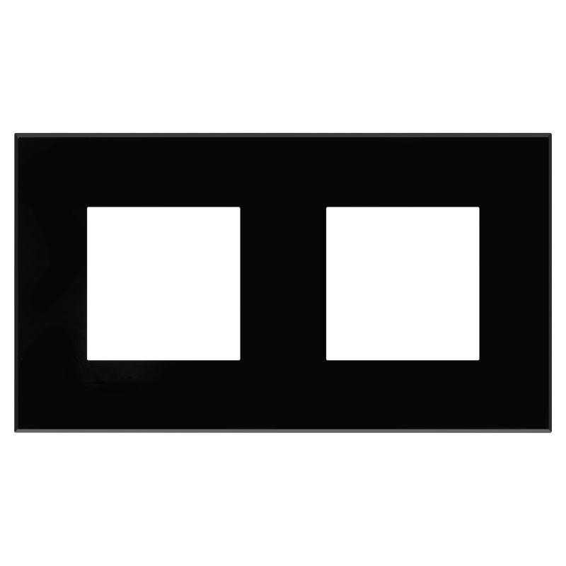 Рамка имеет 2 места под электроустановочные изделия (максимальная вместимость – 4 модуля), может размещаться как горизонтально, так и вертикально. Габаритные размеры: 160х90 мм. Материал – термопласт.