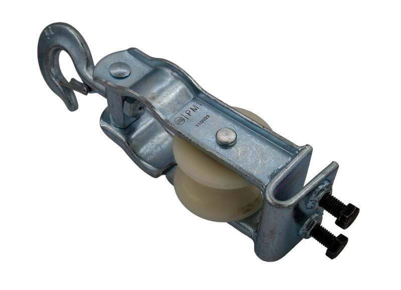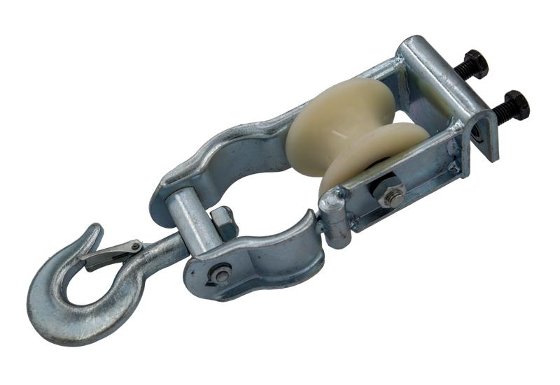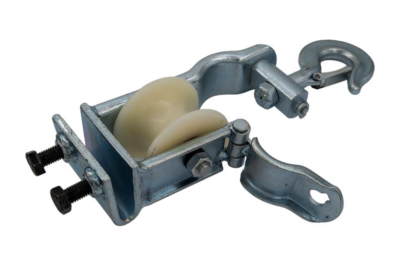 Установка ролика возможна как при помощи подвеса - крюка, так и опорно - при помощи скобы.