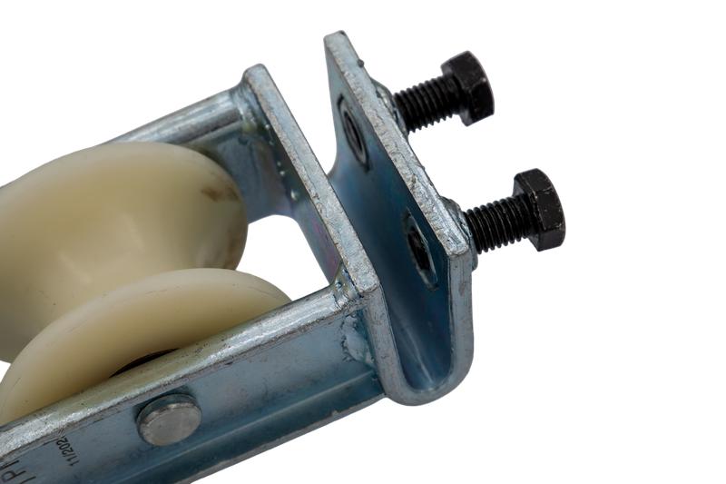В нижней части остова расположена скоба с двумя болтами, скоба позволяет установить ролик на профиле металлоконструкций, раствор скобы не более 10мм - обеспечивает установку опорного типа.