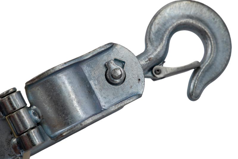 В верхней части ролика установлен крюк с подпружиненным зевом, исключающим падение изделия с высоты и обеспечивающим установку подвесного типа.
