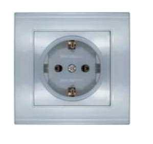 Корпус в виде квадратной формы из пластика, свето- и износостойкого, устойчивого к влиянию UV-излучения и магнитному излучению, со стороной, равной 81 мм, поверхность гладкая, серебристого цвета. Выполнена на керамическом основании, более долговечны, не подвержены оплавлению, не горят и имеют высокие показатели безопасности. Контактная группа изделий изготовлена из латуни. Монтажная пластина изготовлена таким образом, что позволяет крепить изделие не только на винты, но и на лапки, в зависимости от типа монтажных коробок.