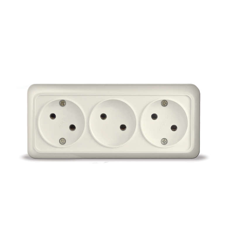 Корпус представляет собой форму из пластика, бежевого цвета. Контактная группа изделий изготовлена из латуни.