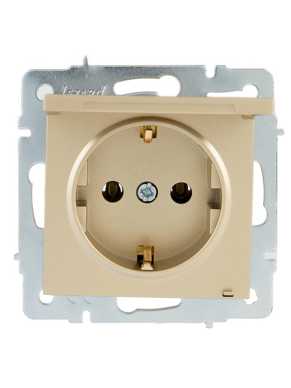 Розетка с заземл. VESNA с крышкой ПБТ зол. LEZARD 742-3688-123B Доставка по России : цена — купить в интернет-магазине | Характеристики, фото