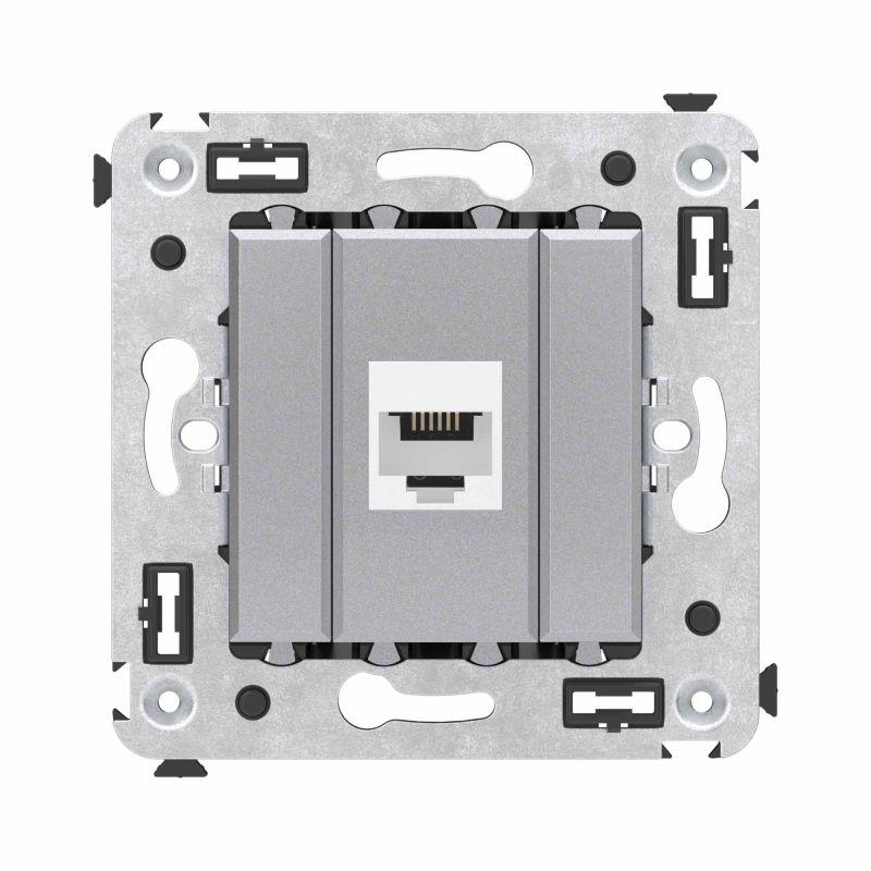 Пластиковые детали электроустановочного изделия имеют цвет "Закаленная сталь".