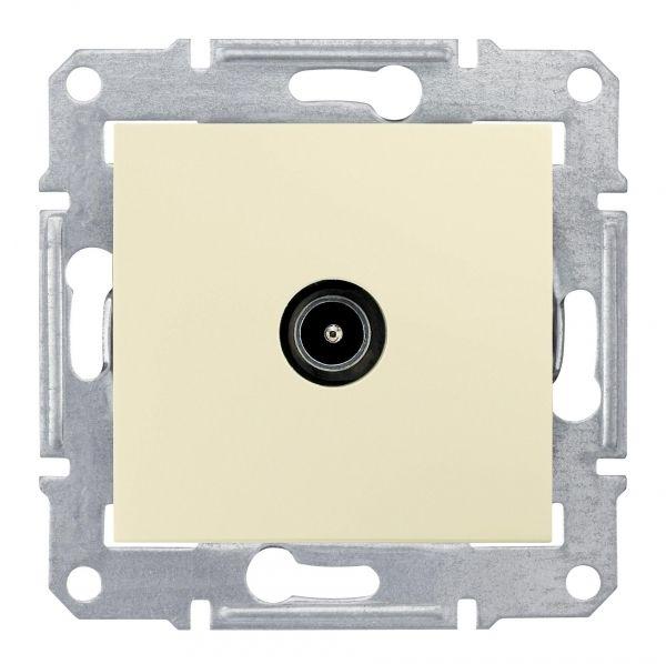 Представляет собой одноместный модуль ТV-розетки с одинарным разъемом для подключения. Изготовлен из пластика, бежевого цвета. Кабель монтируется путем введения штекера в паз.