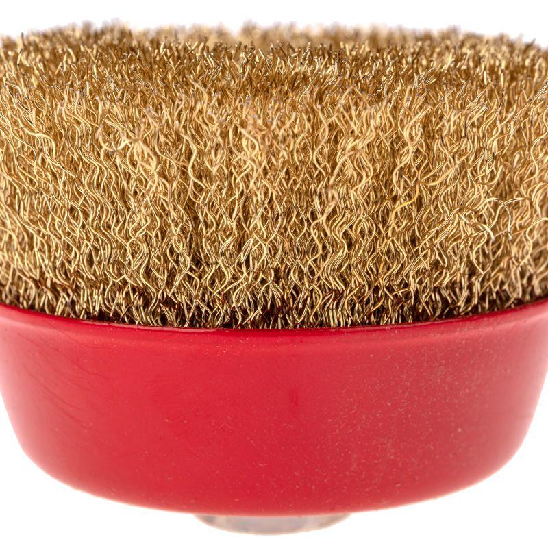 Витая щетина из латунированной проволоки оптимально подходит для аккуратной обработки и шлифовки, позволяет удалить тонкий слой материала, а также придать поверхности глянцевый блеск.