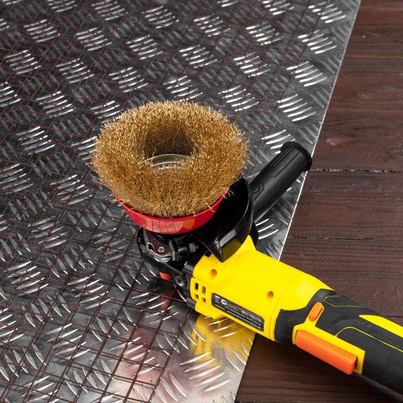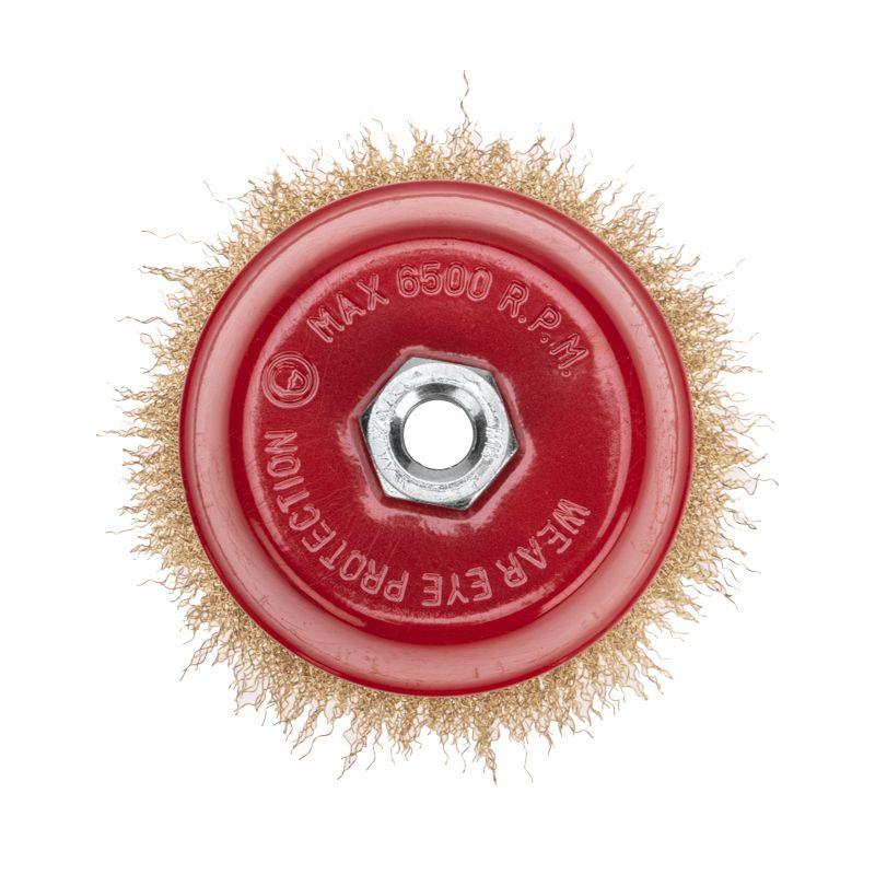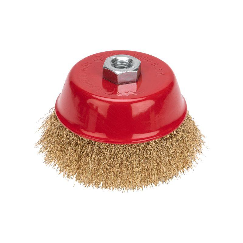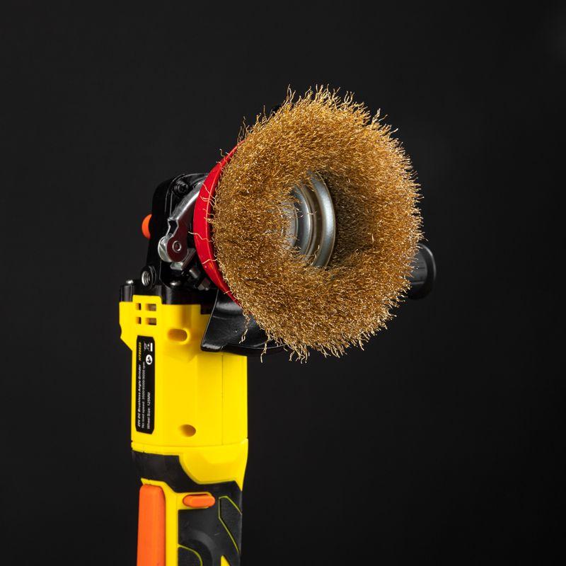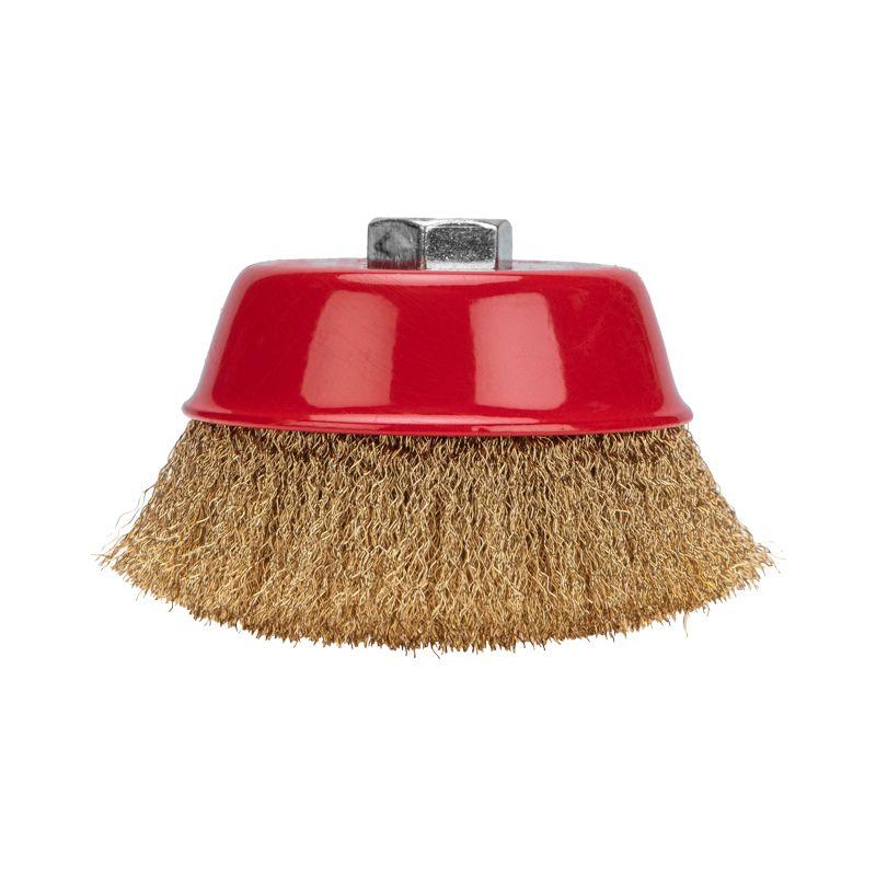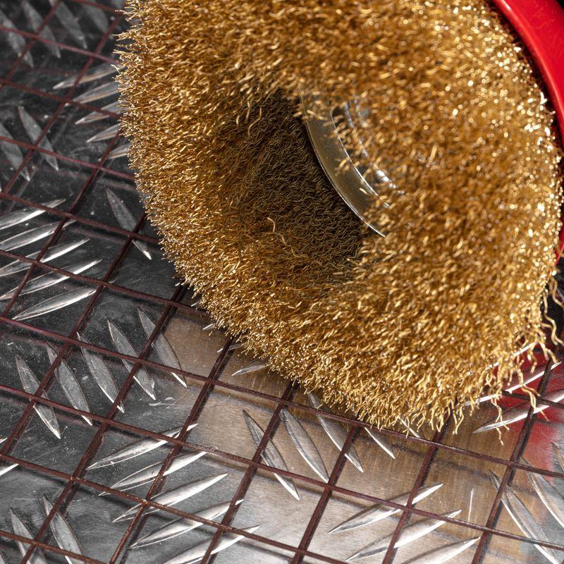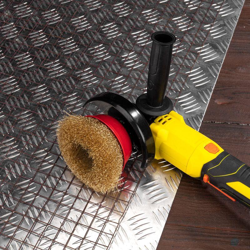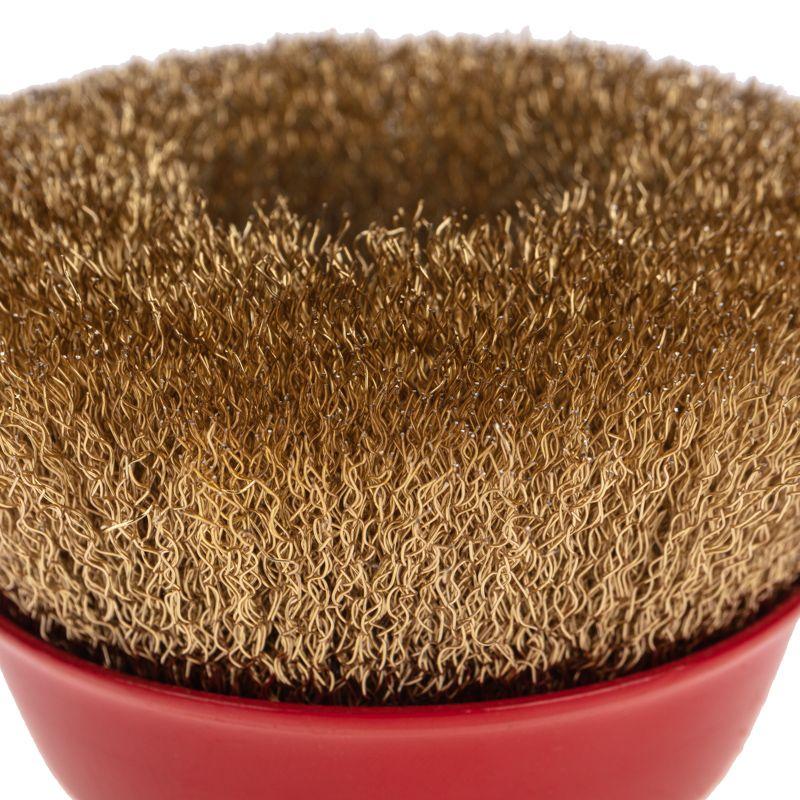 Витая щетина из латунированной проволоки оптимально подходит для аккуратной обработки и шлифовки, позволяет удалить тонкий слой материала, а также придать поверхности глянцевый блеск.