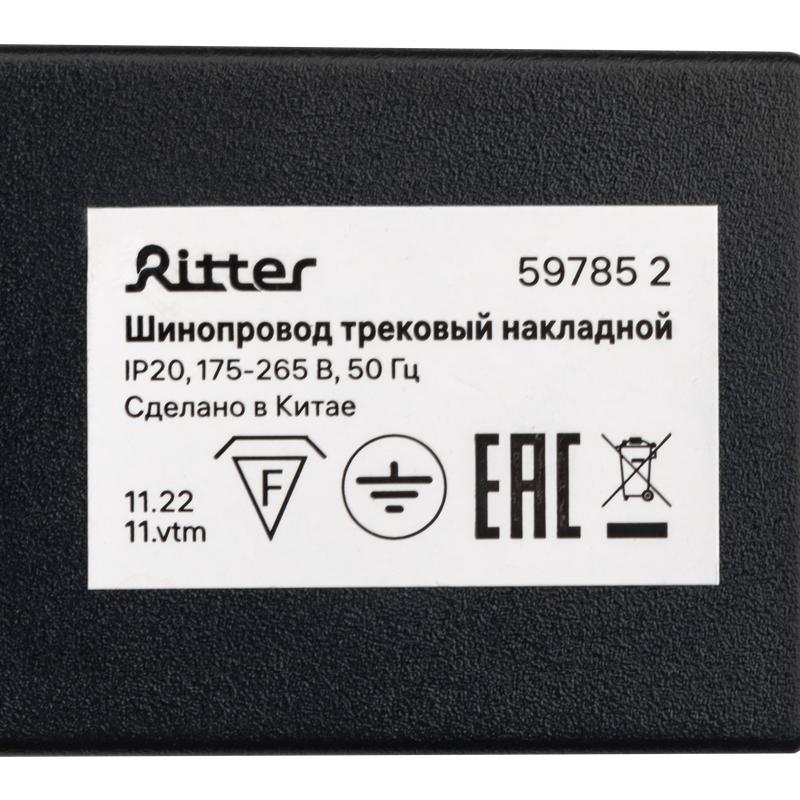 —Шинопровод трековый накладной 1ф ARTLINE с питанием и заглушкой 1м алюм./медь с держателями с пластиковой планкой черн. Ritter 59785 2