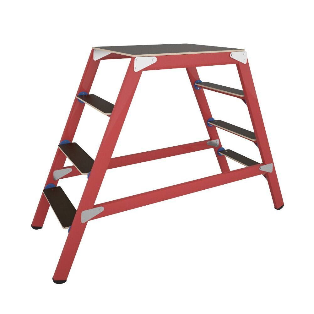 Высота до рабочей площадки диэлектрической подмости АнтиТок ССД-1,0 ПК составляет 100 см. Рабочая площадка подмостей изготовлена из высококачественной, влагостойкой ламинированной фанеры, покрытой противоскользящим материалом. Надежное крепление ступеней к тетивам с помощью специальных шайб (фланцевое соединение) предотвращают расшатывание ступени, что продлевает срок эксплуатации. Шайбы фиксируются с помощью вытяжных заклепок. Ступеньки подмостей покрыты абразивной лентой, сохраняющей свои противоскользящие свойства на протяжении всего срока службы. Каждая ступенька выдерживает нагрузку 150 кг, а тетива - 200кг. Противоскользящие башмаки обеспечивают надежную установку лестницы на поверхности. Ступени дополнительно оснащены откосами, изготовленными из нержавеющей высококачественной стали, с горячей оцинковкой, обеспечивающей повышенную прочность конструкции. Дополнительно подмость оснащена колесами.