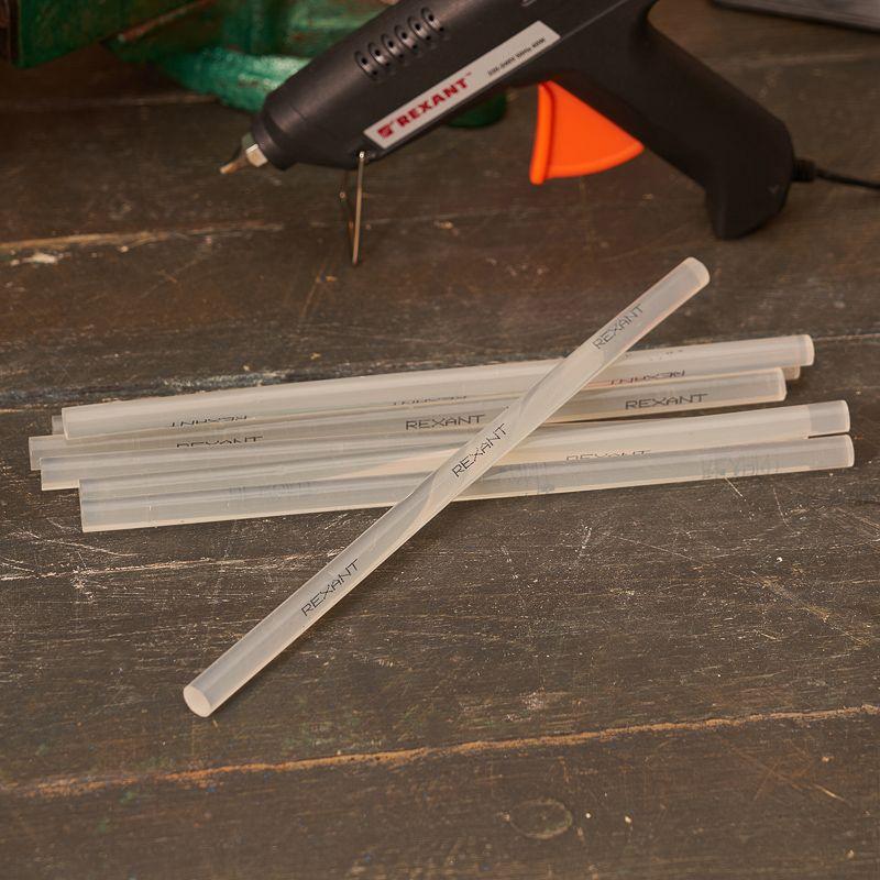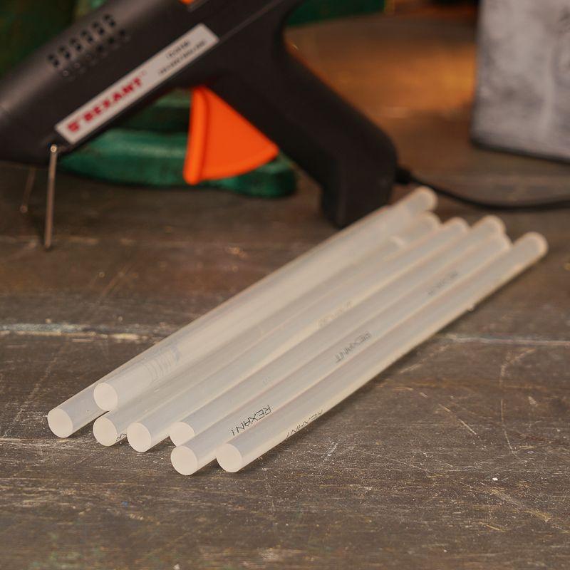 Изготовлены из ЭВА, поэтому полностью экологичны и безопасны при соблюдении правил использования. Обладают высокой скоростью и надежностью склеивания. Время застывания зависит от количества расплавленной массы. Благодаря длине стержней пистолет не придется часто перезаряжать. Используются с клеевыми пистолетами с каналом для стержней соответствующего диаметра. Набора из 10 клеевых стержней хватит для выполнения большого объема работ.