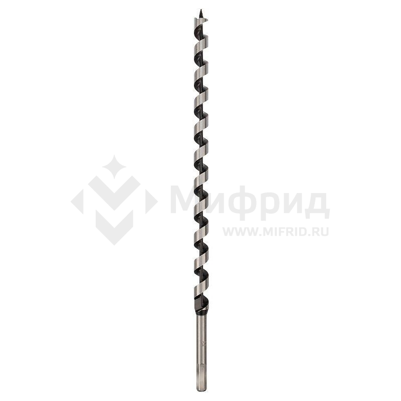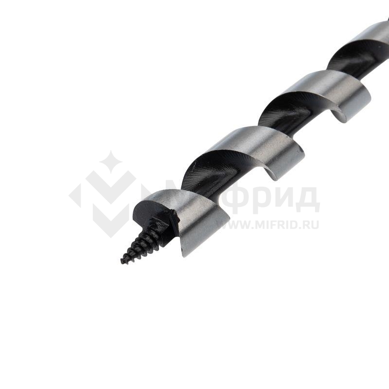 Сверло выполнено из закаленной инструментальной стали, что повышает износостойкость и долговечность инструмента. Центрирующее острие на конце рабочей части позволяет удобно засверливаться в материал и уменьшает осевую нагрузку, шнековая спираль Левиса обработана до зеркального блеска, из-за чего отверстия получаются гладкими, а стружка отводится более эффективно. Хвостовая часть, выполненная в виде шестигранника, надежно фиксирует сверло в патроне инструмента.