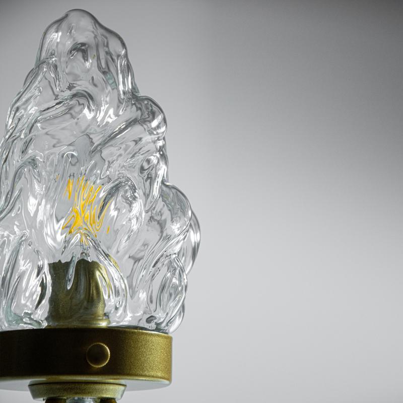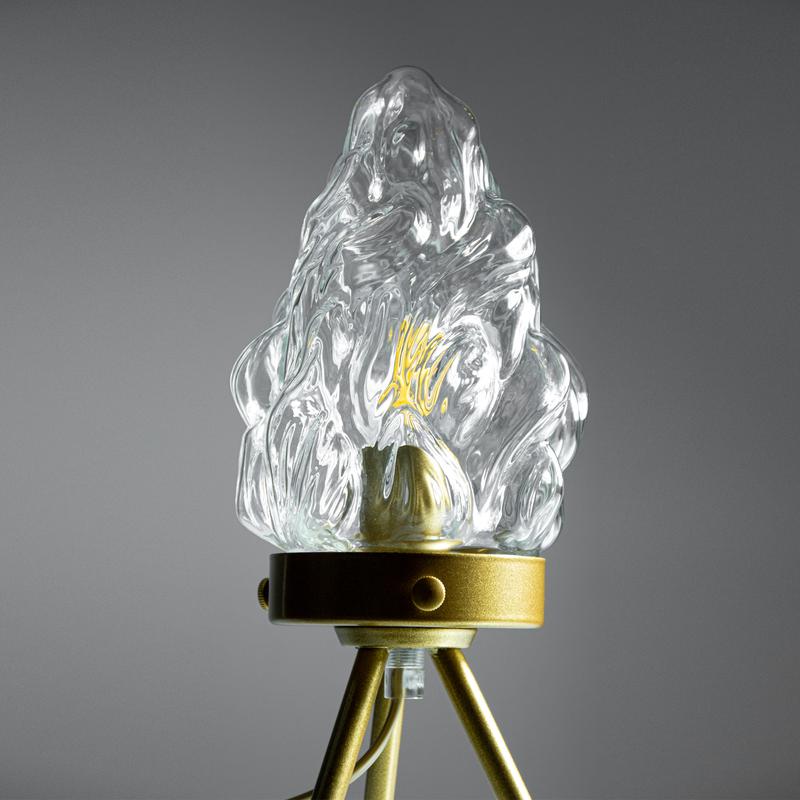 Рассеиватель из стекла по форме напоминает пламя, что создает красивые тени и придает комнате уютную атмосферу.