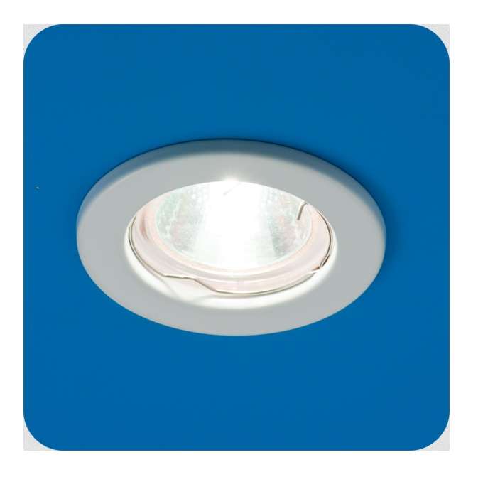 Корпус цельный, из стали, круглый, белого цвета. Диаметр 55 мм, с цоколем GX5,3.