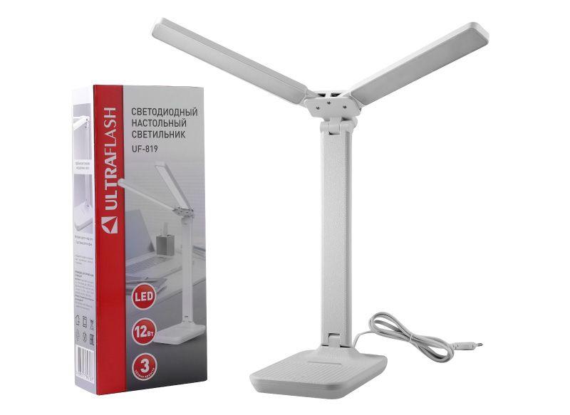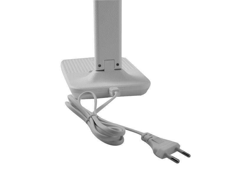 Цвет белый, источник света - встроенные светодиоды, мощность 12Вт, световой поток 600Лм, цветовая температура 6000К, 3 уровня яркости, питание от сети. Складной механизм обеспечивает компактное хранение и транспортировку. Упаковка - индивидуальная коробка.