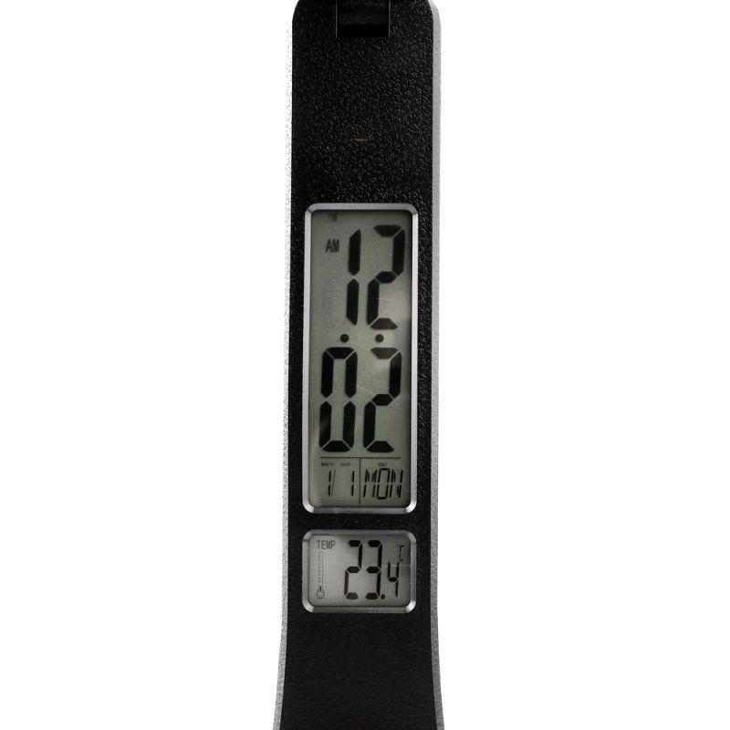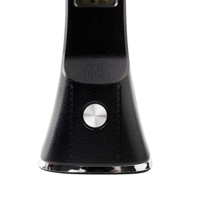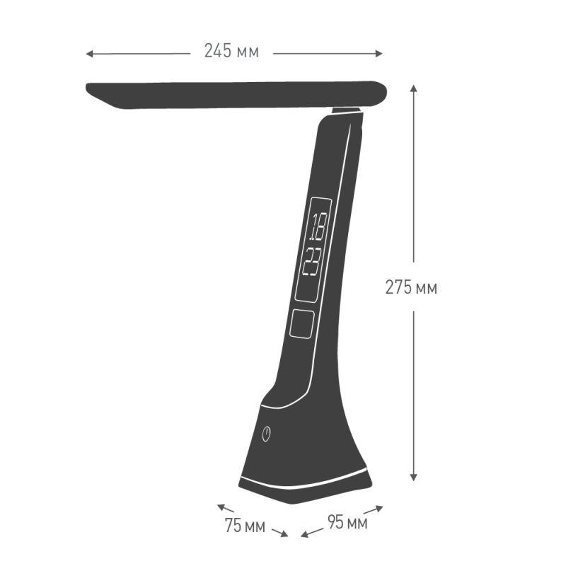 Цвет черный, источник света - встроенные светодиоды, мощность 7Вт, световой поток 350Лм, димируемый, цветовая температура 3000К-6000К, смена цветовой температуры, с дисплеем, календарем, таймером, термометром.