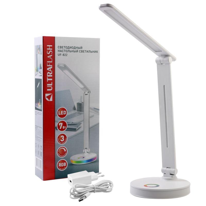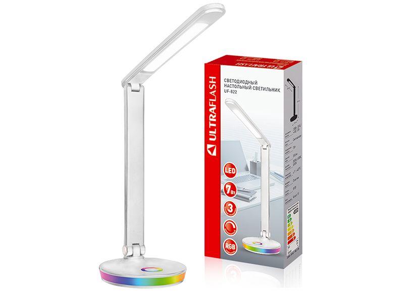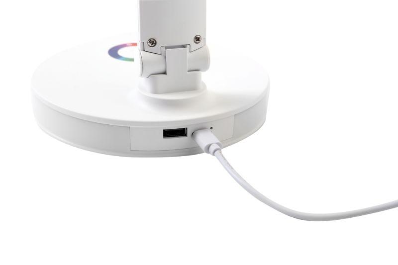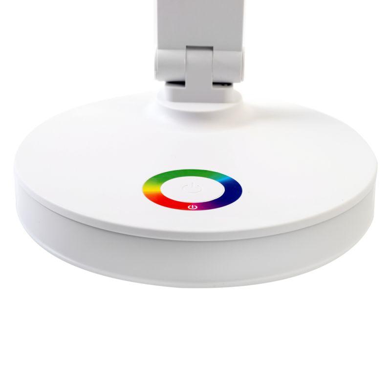 Цвет белый, источник света - встроенные светодиоды, мощность 7Вт, световой поток 350Лм, три цветовые температуры 3000К, 4500К, 6500К, RGB подсветка, диммируемый, питание от сети, материал пластик. Складной механизм обеспечивает компактное хранение и транспортировку.
