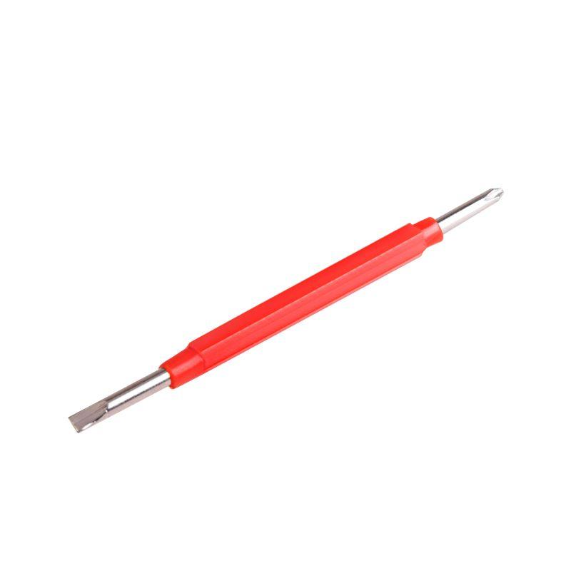Тестер оснащен переставным жалом, которое может быть использовано в двух вариантах: крестообразное или шлицевое. Это позволяет оператору выбрать подходящий тип жала в зависимости от требований конкретной ситуации. Сталь высокой закалки (50HRC) позволяет использовать тестер как отвертку. Наличие намагниченных наконечников обеспечивает удобство при удержании винтов, что особенно полезно при работе с клеммными колодками и светильниками.