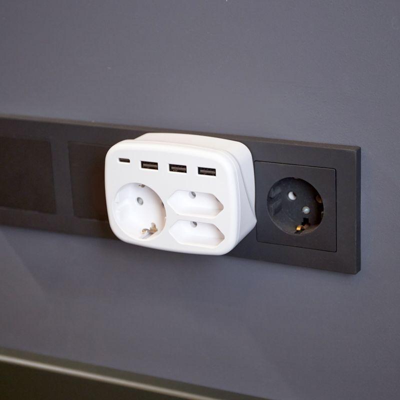 Адаптер можно использовать в помещениях, где могут находиться маленькие дети, так как защитные шторки надежно блокируют доступ к контактам розетки мелких предметов: спиц, карандашей, бусин и др.
