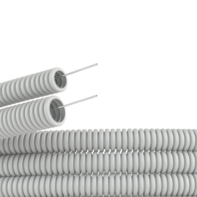 Диаметр - 16 мм. Материал – самозатухающий поливинилохлорид (ПВХ). Цвет - серый. Гофрированные трубы из ПВХ легкой серии могут эксплуатироваться при температуре от – 25 °C до + 60 °C. Длина – 50 метров.