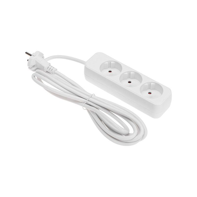 Мощность – 2200Вт. Сечение провода – 2х1,0мм2. Тип вилки – прямая. Цвет удлинителя – белый.