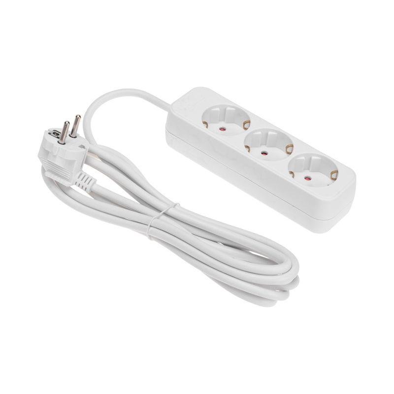Мощность – 3500Вт. Сечение провода – 3х1,0мм2. Тип вилки – угловая. Цвет удлинителя – белый.