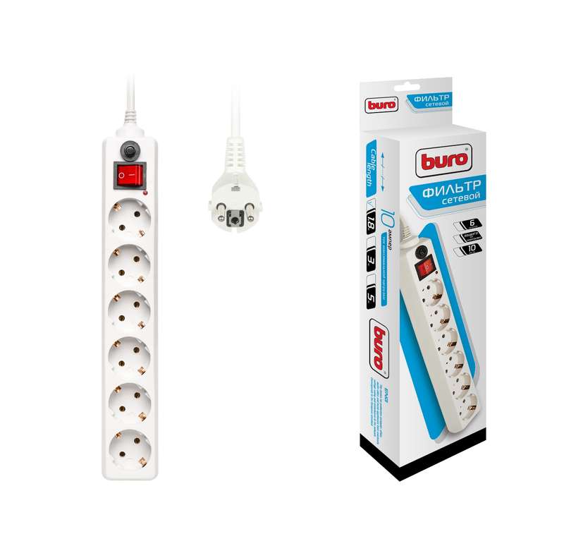 Количество гнезд для подключения: 6 шт. Цвет: белый.