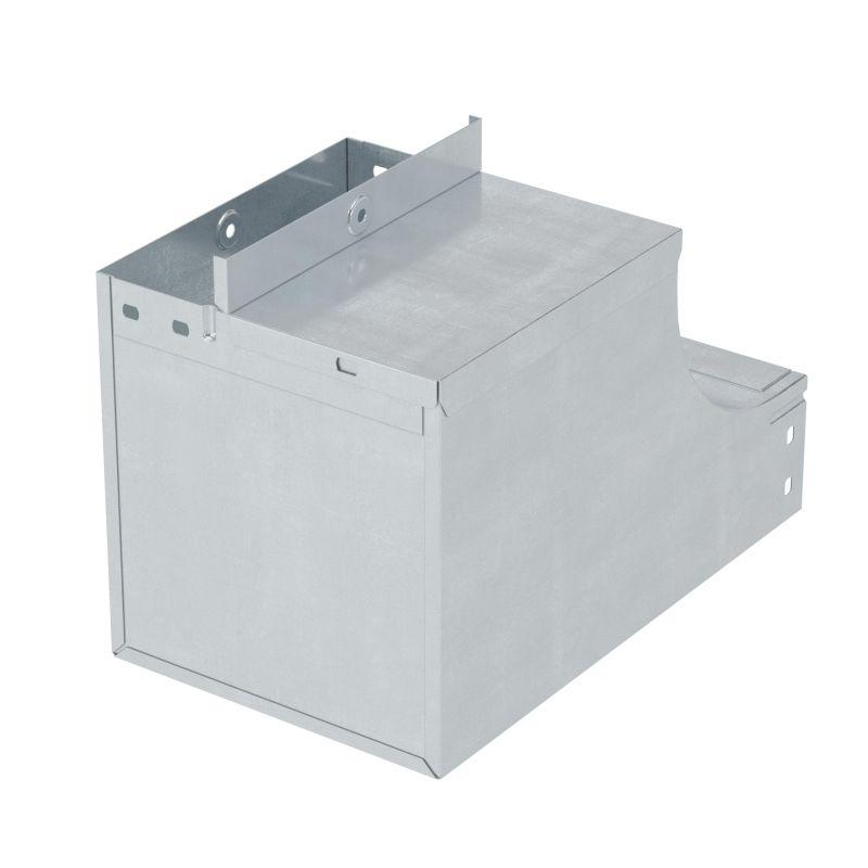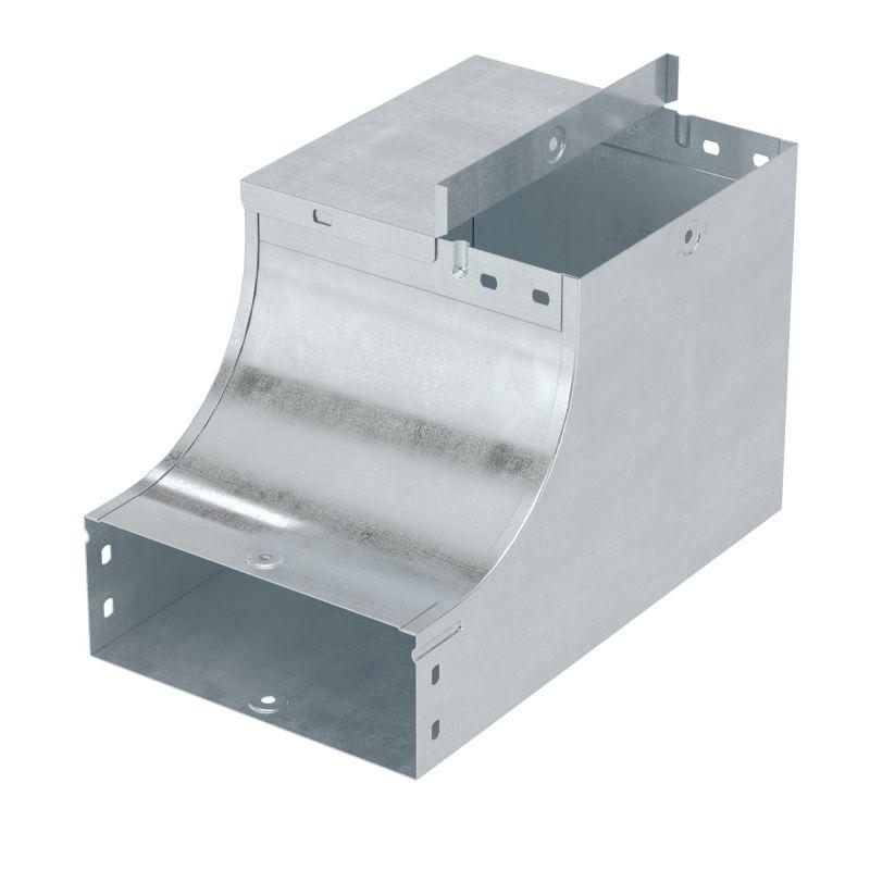 Угол применяется с лотками шириной 150 мм и высотой 100 мм. Внутренний радиус аксессуара - 100 мм. Толщина стали – 1 мм. Исполнение – "сталь, оцинкованная по методу Сендзимира". Применение комплектных аксессуаров облегчает расчет числа необходимых элементов для монтажа – в комплект уже входят соединительные пластины и детали крепежа.