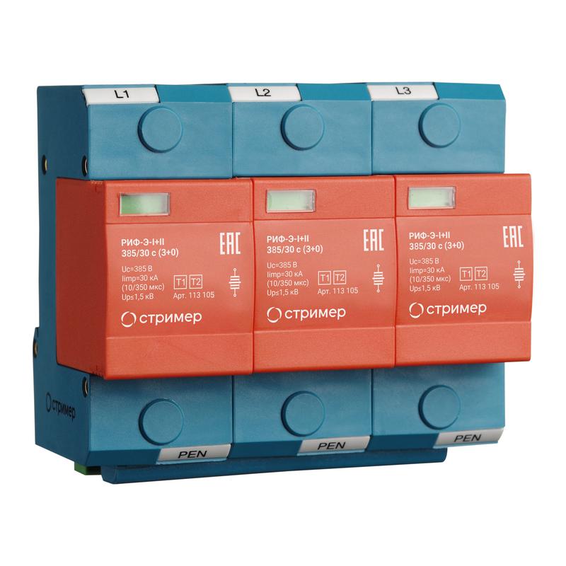 Предназначено для защиты фазных проводников L/PEN от перенапряжений «провод-земля». Рекомендуемый номинал предохранителя не менее 125 А gL/gG.