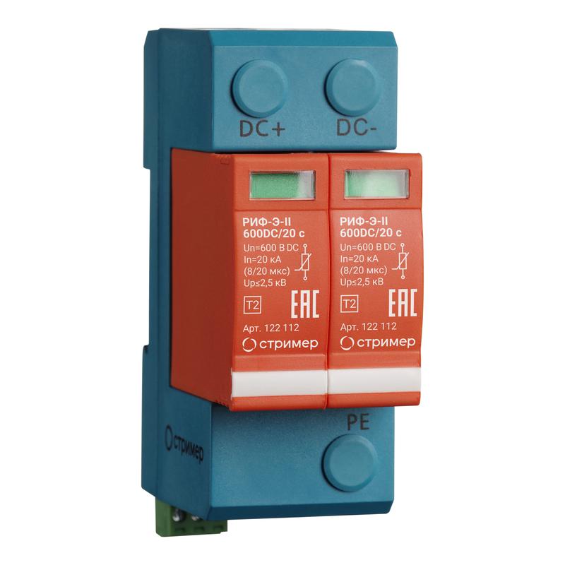 Устанавливается в пределах 1-2 зон молниезащиты (в соответствии с ГОСТ Р МЭК 62305-1 и СО-153-34.21.122). Предназначено для защиты двухпроводной системы постоянного тока.