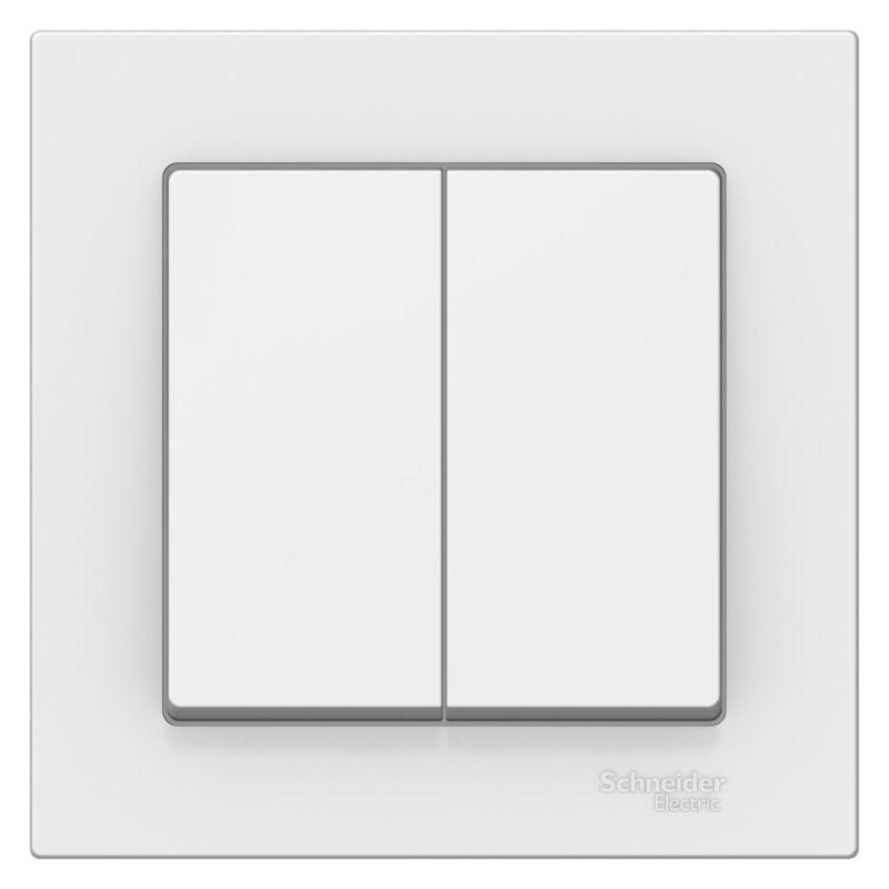 - Двухклавишный выключатель позволяет управлять двумя источниками света с одной точки.