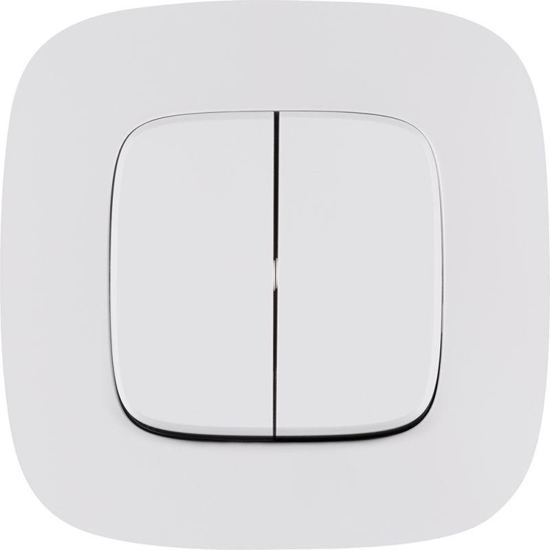 Представляет собой двуклавишный выключатель, из пластика, с лицевой панелью белого цвета, скрытой установки, монтируемый под штукатурку.
