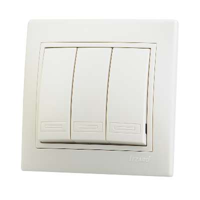 Выключатель 3-клавишный это двухпозиционный коммутационный аппарат с замыкающими (нормально-разомкнутыми) контактами, предназначенный для работы в сетях с напряжением до 1000 вольт, не предназначенный для отключения токов короткого замыкания, без специальных устройств дугогашения, местного управления, с ручным приводом.