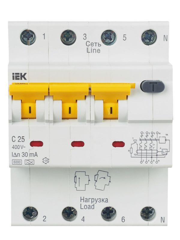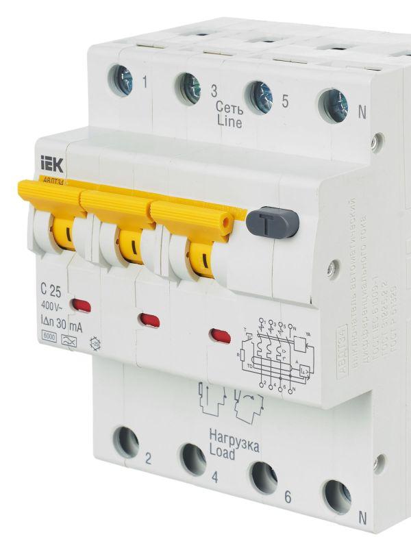 АВДТ34 выпускаются в четырехполюсном исполнении на номинальные токи 6, 10, 16, 20, 25, 32, 40, 50, 63 А и номинальные отключающие дифференциальные токи 10, 30, 100, 300 мА.