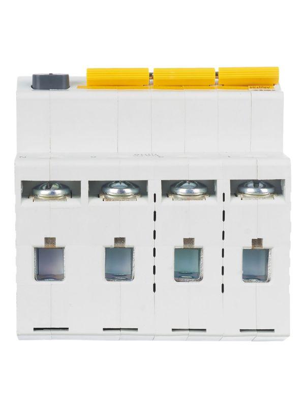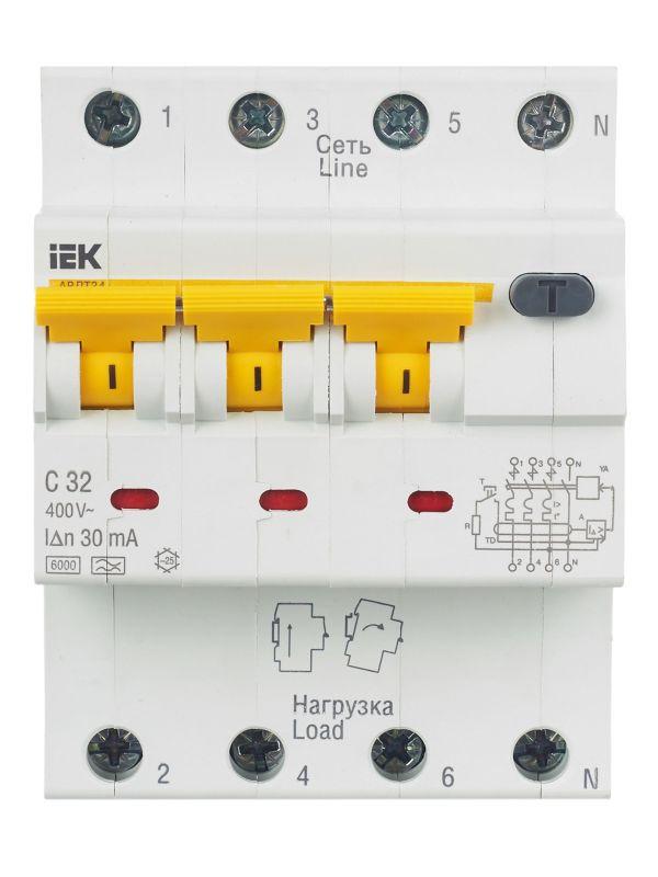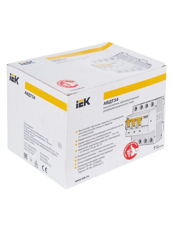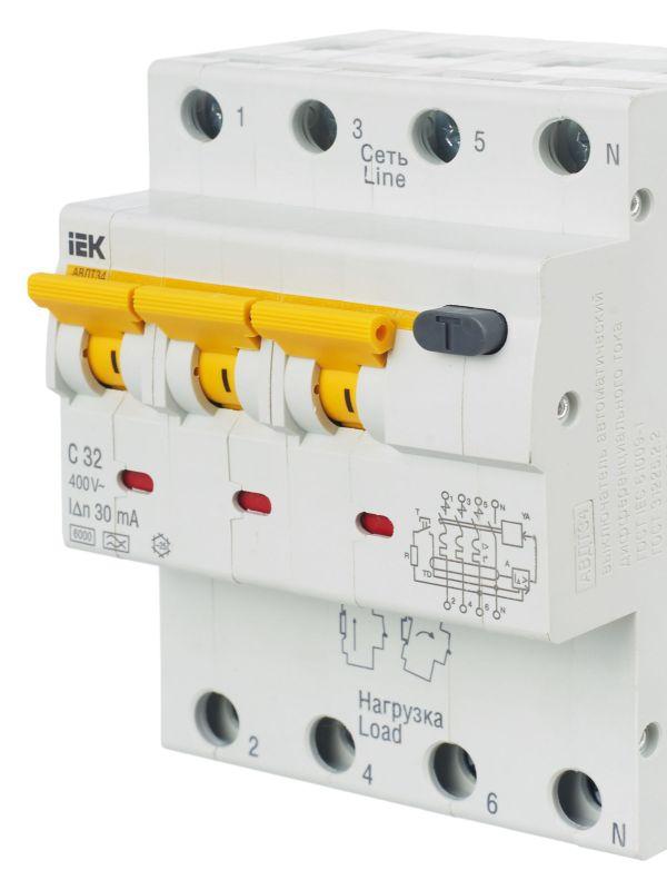 АВДТ34 выпускаются в четырехполюсном исполнении на номинальные токи 6, 10, 16, 20, 25, 32, 40, 50, 63 А и номинальные отключающие дифференциальные токи 10, 30, 100, 300 мА.