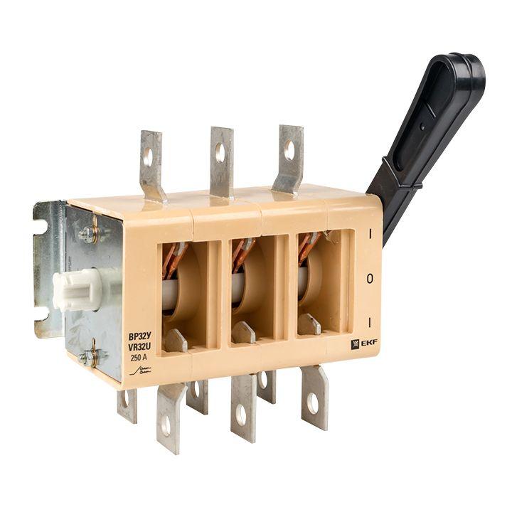 Конструкция контактных выводов обеспечивает болтовое присоединение шин или проводников, оконцованных кабельными наконечниками. Все рубильники являются универсальными по типу присоединения рукоятки. Конструкция рубильника предусматривает установку рукоятки как справа от корпуса, так и слева. Расположение рукоятки, левое или правое, можно поменять в процессе эксплуатации при необходимости.