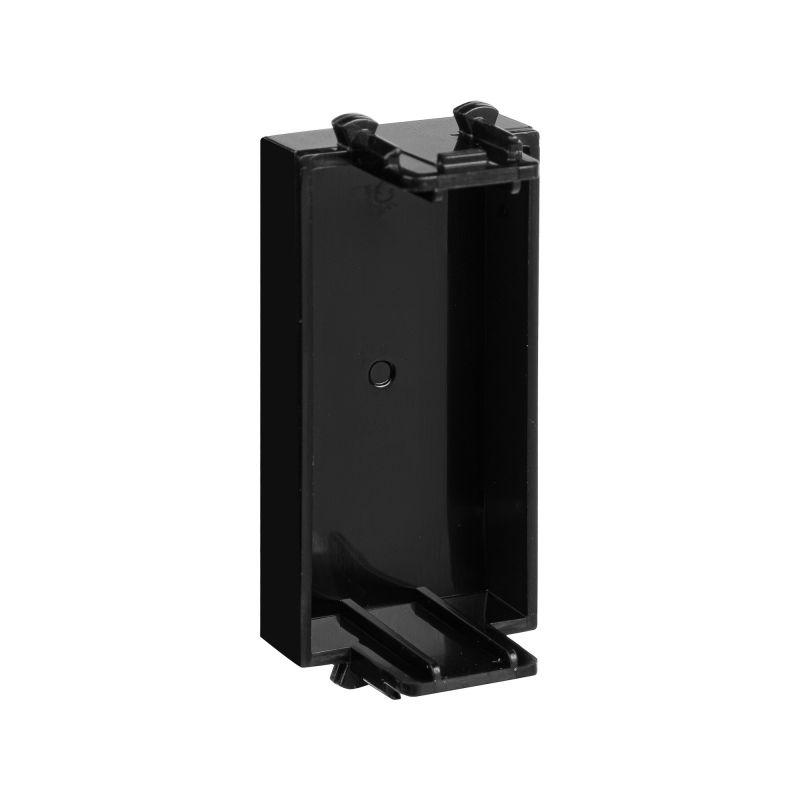 Заглушка подбирается под цвет электроустановочных изделий. Эта модель имеет цвет "Черный квадрат" – насыщенный черный с глянцевым блеском.