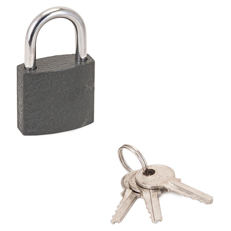Замок навесной цилиндровый общего применения. Материал корпуса - чугун. Закаленная стальная дужка диаметром 4,5 мм; проем дужки - 15 мм по высоте и 15 мм по ширине. Габариты корпуса - 30х27,5 мм. Комплектуется 3 английскими ключами. Замок имеет функцию ав