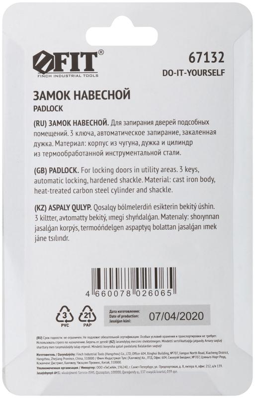 Замок навесной железный 32х28мм стальная дужка 5мм FIT 67132 Доставка по России : цена 186,35 руб. — купить в интернет-магазине | Характеристики, фото