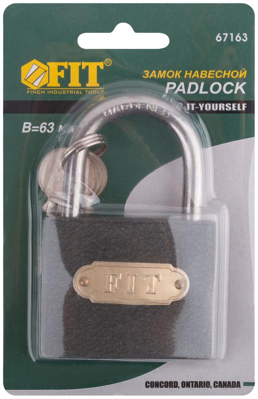 Замок навесной железный 60х48мм стальная дужка 75мм FIT 67163 Доставка по России : цена 421,30 руб. — купить в интернет-магазине | Характеристики, фото
