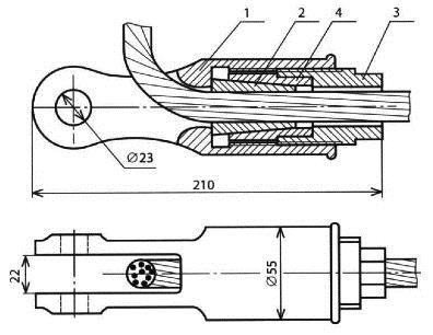 Назначение: для анкеровки многопроволочных алюминиевых проводов сечением 185 мм2, в том числе с оводом.