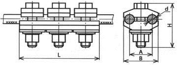 Трехболтовой плашечный зажим используется для состыковки сталеалюминиевых и алюминиевых проводов при монтаже воздушных ЛЭП и контактных сетей железных дорог.