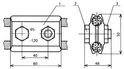 Назначение: для соединения многопроволочных медных и сталемедных проводов сечением 95-120 мм2.